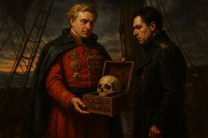 The latter had a scheduled classified meeting in the Narrow Sea between themselves and the Imperius Ambassador, who was looking for the missing Imperius Trade Federation Ships. During the meeting, Eisberck presented the ashes of Dervich as a gesture of good faith, and he invited the Imperius Kaiser to Helmira for a meeting with Emperor Louis. Allegedly the Imperius delegation was in utter shock at the barbarity, but all that is known for certain is that they took the remains with them, reunited Dervich with his family, and accepted the invitation.